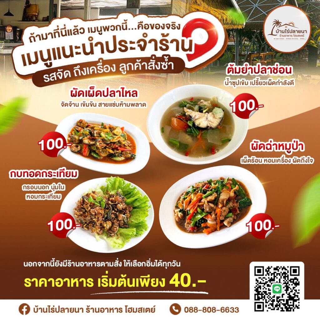 เน้นโสแกน มีครบจบที่เดียว และการบริการที่เน้นเป็นกันเอง ให้ความรู้สึกเป็นครอบครัวยายได้จากไปอย่างสงบ และทิ้งร้านอาหารบ้านไร่ปลายนา คาเฟ่ ไว้ ให้ลูกหลานสานต่อ