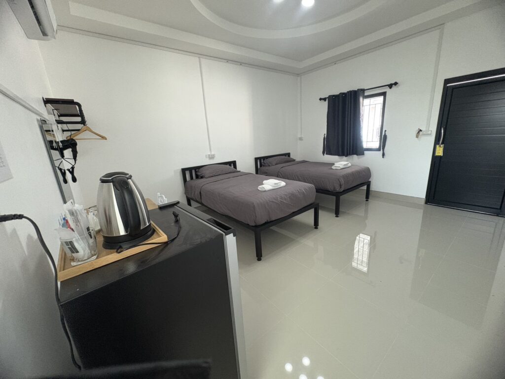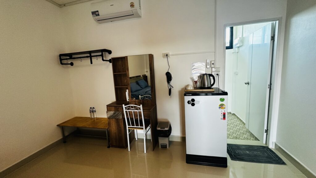 เครื่องปรับอากาศ, Wi-Fi, ทีวี (Smart TV), ตู้เย็นขนาดกลาง, กาต้มน้ำ, ชุดชงชา/กาแฟ, โต๊ะ/เก้าอี้
